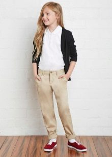 Black pants are a classic business casual. Such models, as a rule, are acquired for the school, for participation in various official events, as well as for cultural outlets (for example, to the theater).