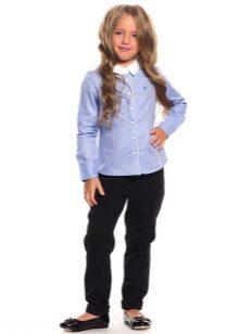 When collecting a child for school, a set of trousers should be purchased with several plain shirts and a turtleneck, a pair of elegant blouses, a vest, a jacket, and for the cold season - a sweater with buttons or with a V-neck. Shoes for study should be comfortable and consistent with the school style.Usually these are shoes, sandals or boots.