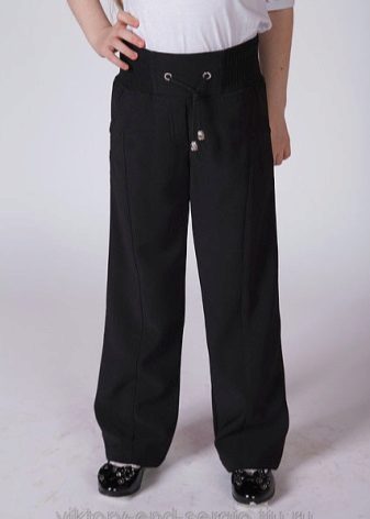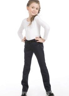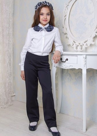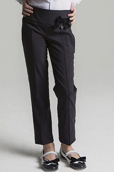 Most often, classic models are purchased for the school: straight or slightly narrowed down trousers, plain, without unnecessary decor. Colors - restrained, neutral: black, gray, brown, dark blue, etc.