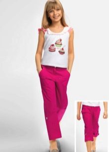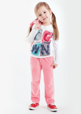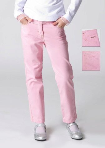 Pink pants are the dream of every little fashionista, a fan of the Barbie style. Pink pants are a good option for a holiday or walk around the city. A white or bright top (for example, yellow or turquoise) will suit them.