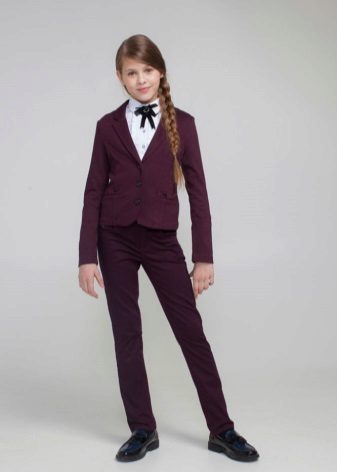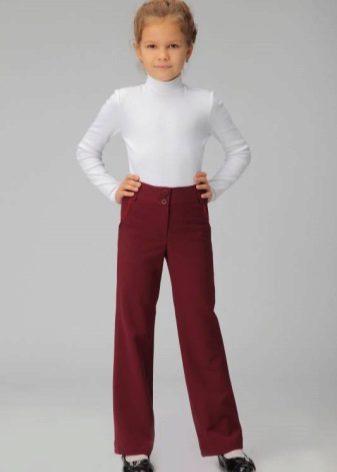 Burgundy, wine and lingonberry trousers are a very stylish solution that will appeal to both young fashionistas themselves and their parents. Burgundy trousers + a white or beige shirt will become an original variation of the classic combination of “light top, dark bottom”.