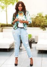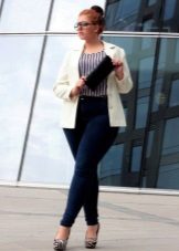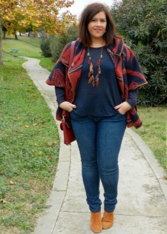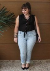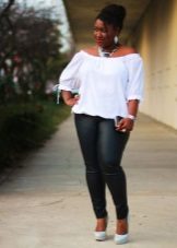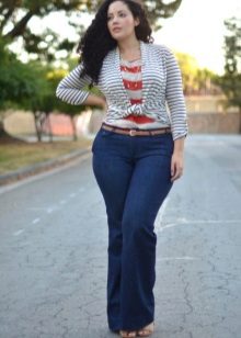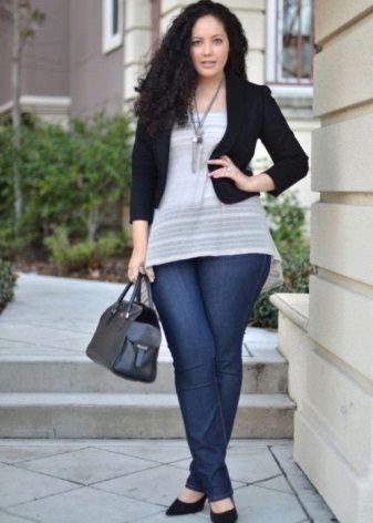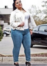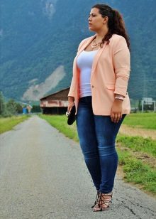Jeans are a real find for full women, as they can significantly transform the look. Among the variety of models, it is worth paying attention to stretch jeans with high waist. Be sure to keep in mind that dense denim, due to its thickness, will make your hips and buttocks more voluminous, so try to buy models of lightweight denim.