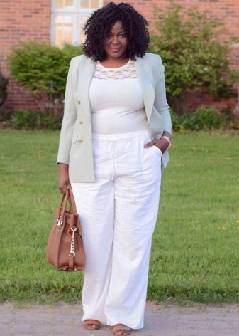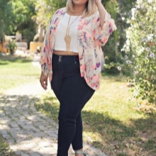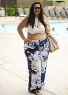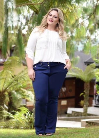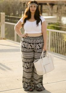 Summer is a time of bold flowers and interesting styles. Chubby girls can fully afford a stylish wardrobe. This is especially true for various models of trousers. Volumetric sultanas or tight-fitting leggings, wide flared or narrowed bananas - among such a variety, you can easily choose a style that suits your type of figure and style in clothes. Of the fabrics, preference should be given to airy chiffon and light natural fabrics - silk, batiste or cotton.