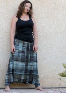 Turkish pants, or "harem pants," are a very popular model. But, unfortunately, girls with non-standard volumes are not recommended to wear them. Since wide legs and elastic bands on the lower part create additional volume, excessive completeness will stand out much brighter and only make the silhouette even larger.