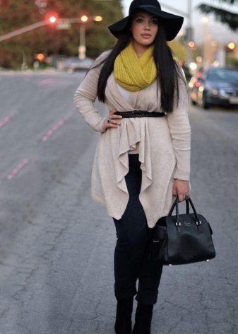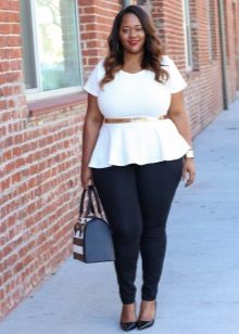 For the upper part, you can choose an asymmetric cut tunic - it will hide the buttocks and hips, which are often a problem area. The high waistline can emphasize its harmony, and also highlight the line of the chest, making it more visible and magnificent.