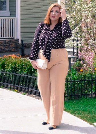Among the whole variety of colors in the wardrobe of full girls, of course, there should be black trousers. This classic tone in any style visually reduces the volume and makes your silhouette slimmer.