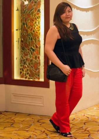 Pants of bright colors should be worn only in those styles that hide the fullness of the body - between straight pants and a skinny preference should be given to the first option. White models should be strictly cold shade.
