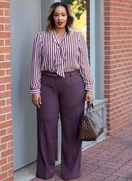 Fashion trends of recent seasons have not bypassed the model of trousers for full girls, somewhat transforming them and making them even more stylish.