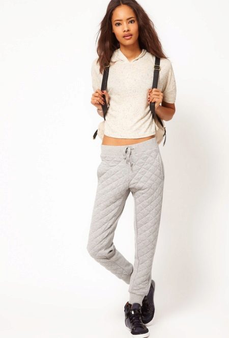 Since joggers are more than just a training leotard, trousers quickly became fashionable and stepped far beyond sports. Today, pants of this style are sewn from various fabrics and decorate in every possible way.