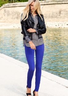Skinny pants are an undoubted trend. They differ from each other in the length of the trousers: from the classic length to 7/8. Skinny pants also differ in texture. Designers decorate blue trousers brighter and brighter. So, for example, more and more often we see pants with print.