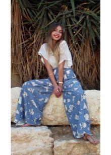 More recently, trousers made of knitted fabric belonged to the home. Now we see knitted trousers in various styles of clothing, for example, a romantic or casual.