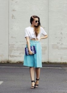 Sneakers or moccasins will help to create not only casual style or sports, but also romantic. For example, choose a sky blue bag and a white print t-shirt.