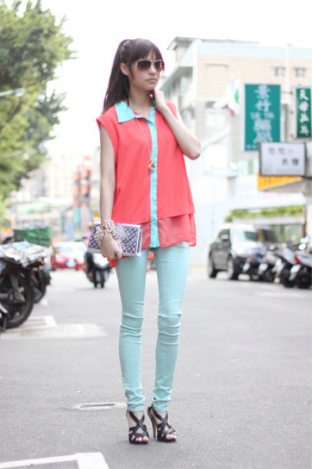 To create a business style, it is best to combine with a jacket in a contrasting shade, for example, yellow, orange or white.