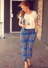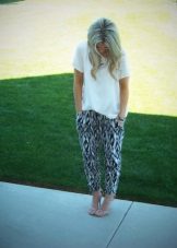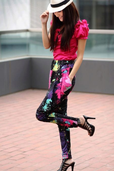 Less popular pants with prints - floral, animalistic, geometric. They are more difficult to combine with other clothes. But they look fashionable and extravagant.