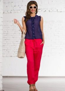 Bananas. The summer model is somewhat reminiscent of chinos, but it is free not only in the hips, but also in the knee area. Bananas look good with a narrow waist and broad shoulders, the main thing is to emphasize the bends of the waist. They are worn with sneakers, sandals, high-heeled shoes.