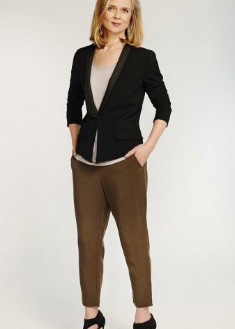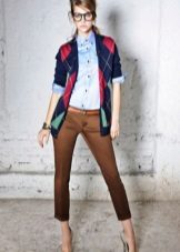 Blazers matching the trousers, or other shades of brown, are also great for the office; checkered jackets will look great. From shoes stilettos or high-heeled shoes.