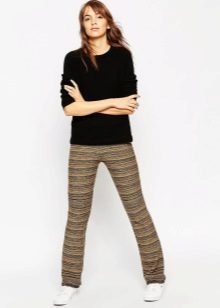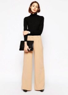 - Flared pants, strictly style with arrows or loose of light materials. With the right combination, they are perfect for an office atmosphere. With strictly style pants, it is better to wear shoes with high steady heels.
