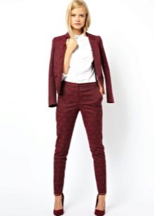 A light shade of gray-brown is combined with burgundy. This very interesting combination is suitable for work and leisure. From the accessories we add a scarf of dark brown or dark gray color. From shoes, both boots and shoes are possible.