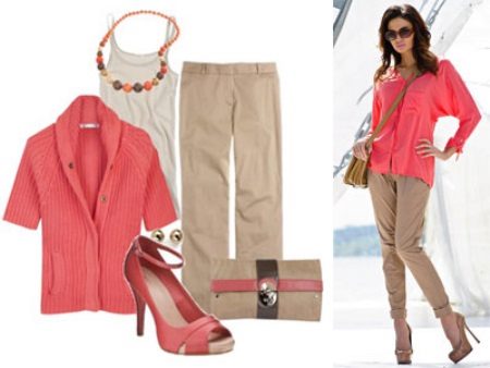 For evening outings, if you want to look bright, combine brown with green, blue, coral. Do not forget about heels, clutch bags or bags on a long chain.