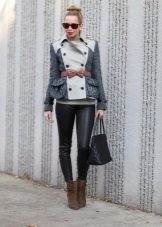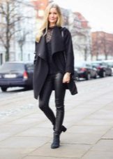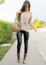 An option for practical girls: leather leggings, suede boots, a loose T-shirt, jacket.