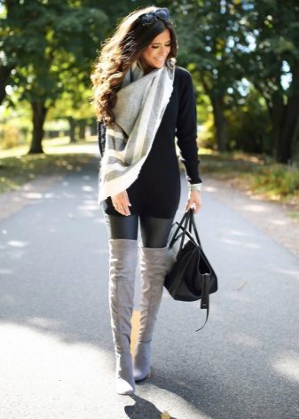 Shoes can be different: boots with high or low heels, ankle boots, sandals, rough boots, elegant sandals, classic boats. Just remember that suede leggings should choose smooth leather shoes.