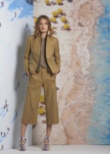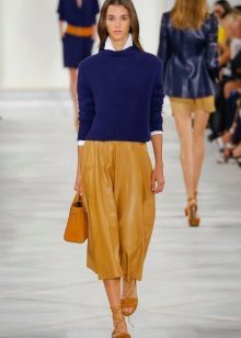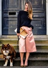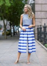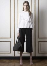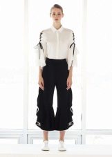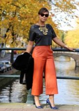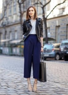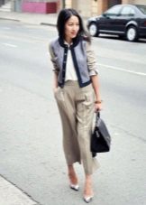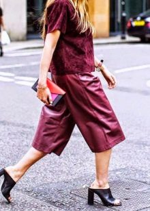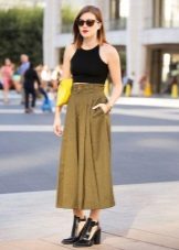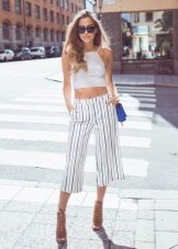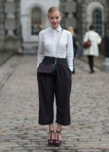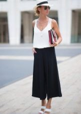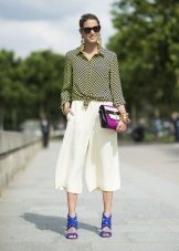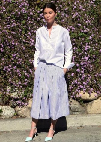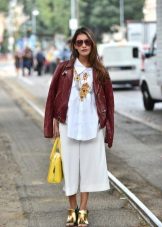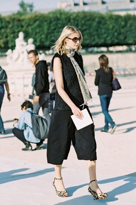 A perfect pair of culottes will be blouses, shirts, fitted jackets and vests. In cool weather, you can put on a thin sweater or leather jacket. In summer, culottes can be worn with various tops, including shortened ones.