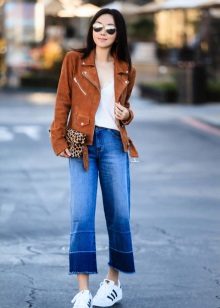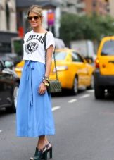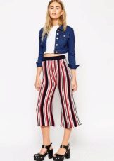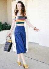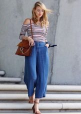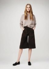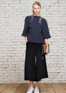 In everyday life, stitches can be combined with your favorite, practical clothes - t-shirts, short tops, shirts, sweaters and turtlenecks. With all these things, culottes made of democratic materials such as denim, velor or thick knitwear will look great.