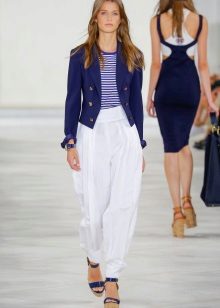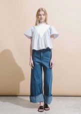 Short and chubby young ladies should be very careful with this model of trousers. The fact is that such a style visually shortens the legs and conceals a few centimeters of growth, therefore, high-heeled shoes are strictly recommended to him. You should also emphasize the waistline, so choose trousers with a high rise.
