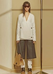 Culottes, despite some specificity, is an almost universal thing that can be used to create an image in different styles. Pantaloons can be part of a business suit or evening gown, or can successfully serve as casual wear. Read more about how and with what to wear culottes in different life situations, read below.