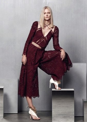 - To be published: an openwork set of a deep wine shade, consisting of perforated culottes and a sexy top with a long sleeve.