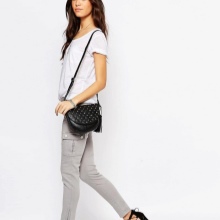 The moderate-fit baggy suits absolutely everyone, but if you have wide hips, discard excess volume and large patch pockets. On the contrary, for girls with a “triangle” figure, this style follows; it visually adds volume to their hips.