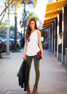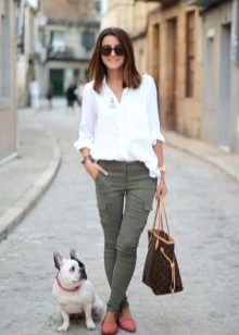 On girls, khaki pants look the most advantageous with a white top. This allows you to emphasize their femininity and sophistication.