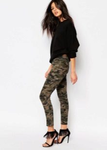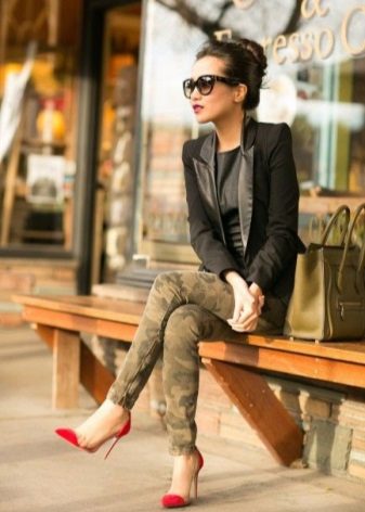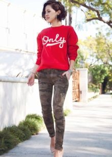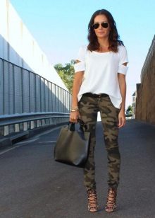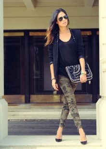 The most popular are military-style pants with camouflage prints. So that these trousers do not look like army ones, wear them with denim items and bright accessories.