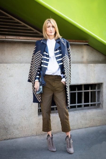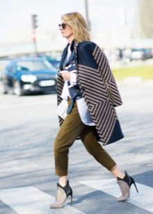An interesting example of how cropped military-style trousers fit perfectly into a business image. Just wear them with a white shirt and high-heeled ankle boots. If you also like layering, complement the look with a jacket-overcoat, over which throw a coat-oversize. No one can blame you for the lack of style!