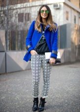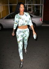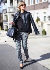 If you put a smart black top and shoes on the leopard joggers and add an elegant bag of unusual shape to them, you get a completely elegant kit for a gala event or party.
