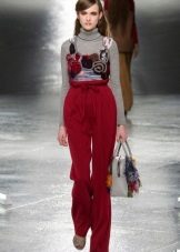 Lush, wide trousers such as harem pants look very stylish and feminine in the performance of translucent materials. Some models may have one or more cuts on the sides, decorated with braid, rhinestones and other decorative elements.