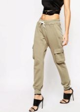 - cargo (casual pants with wide legs). They have a low fit, large patch pockets, noticeable seams, flaps. Coloring often imitates military camouflage.