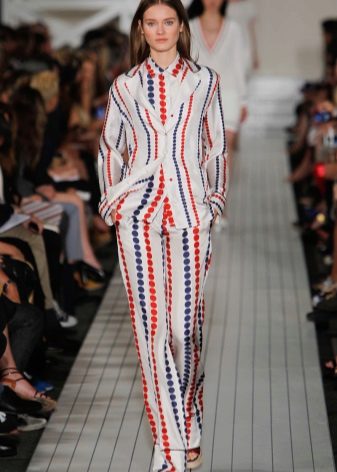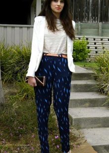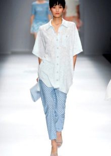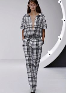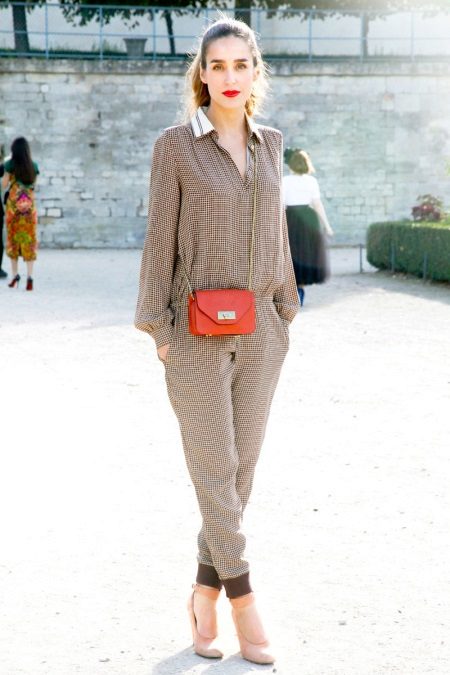 Do not neglect the selection of top with a print to color your "pajama" trousers. The combination of narrowed trousers and a shirt with the same pattern, for example, in a checkered box, will make an impression of a jumpsuit popular this season. The shirt should be tucked into the pants.
