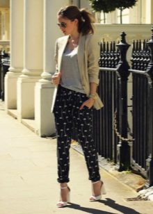 There are a lot of options for wearing this innovation in the fashion world. And, given that the combination of the incongruous has been declared the main fashion trend of this year, then everything will work, since you have put on “pajama” trousers. This applies to textures, drawings and shoes.