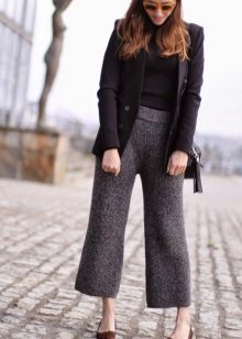 Gaucho pants. This model resembles cropped wide pants. These pants are distinguished by a wide belt and a softly flared cut from the hip line. Only young ladies with long legs and a good sense of style can be recommended.