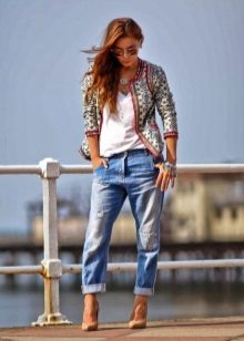 Boyfriend jeans - A popular model with trousers tucked just above the ankle. Classic "boyfriends" usually without pinches and creases at the waist. The easily recognizable shape comes from a rather low fit at the waist and trousers tapering to the bottom.