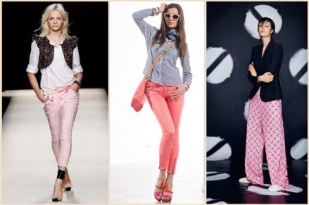 Pink trousers give a silhouette of elegance, charm and attractiveness. They can be combined with different colors: delicate and rich, light and dark, bright and pastel.
