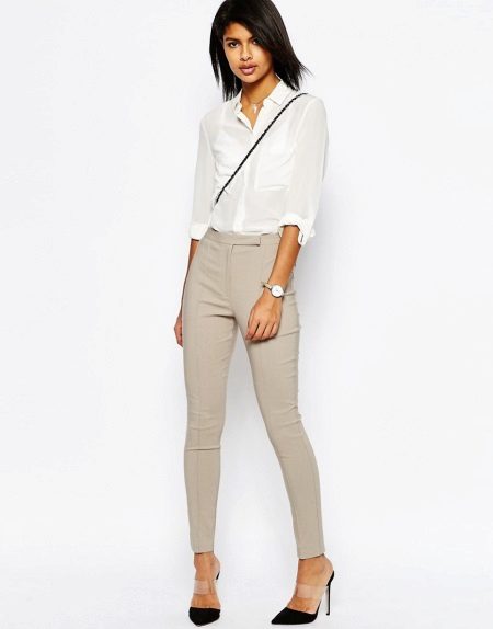Another element of the basic wardrobe, which perfectly combines with things of different colors and styles. Snow-white trousers always look very elegant and feminine. In combination with a smart blouse, white trousers can make a festive outfit for a special occasion.