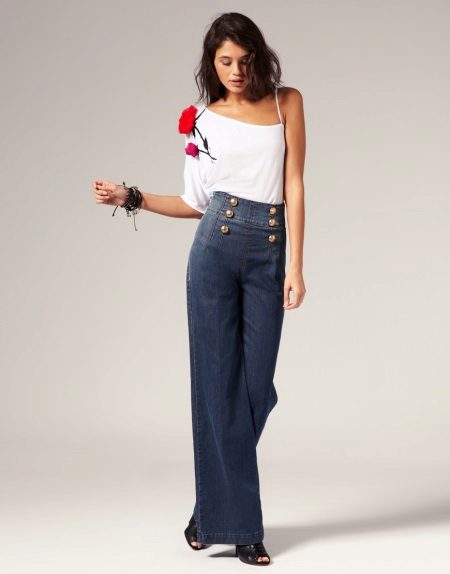 It is a mistake to believe that high-rise pants are exclusively models with a waistline almost under the chest. In fact, the belt of such trousers runs exactly along the waist line or slightly higher. That is why such a model is suitable for almost all women, regardless of their height and complexion.