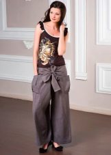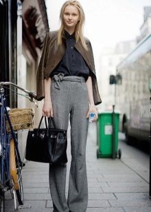 Flared pants. Flares are different - from the knee, hip or waist. In any case, gray flared pants are room for imagination.