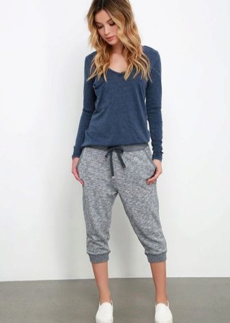 Shortened models - capri pants, chinos, trousers 7/8. A great base for a trendy modern look. But a rather dangerous thing - they can deform proportions. Gray color is able to smooth the features of different types of figures, to make the image holistic.
