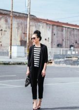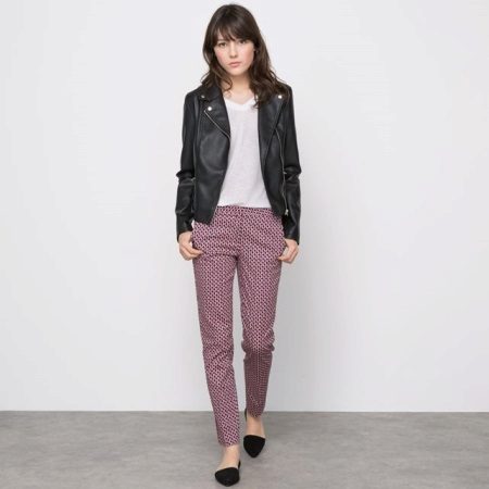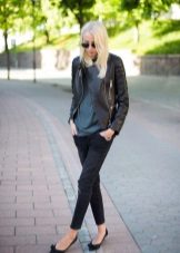The jacket is always stylish. She makes any combination of clothes relevant, adds a spirit of freedom and rebellion, and with pipe trousers, the look becomes incredibly fashionable.