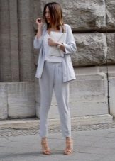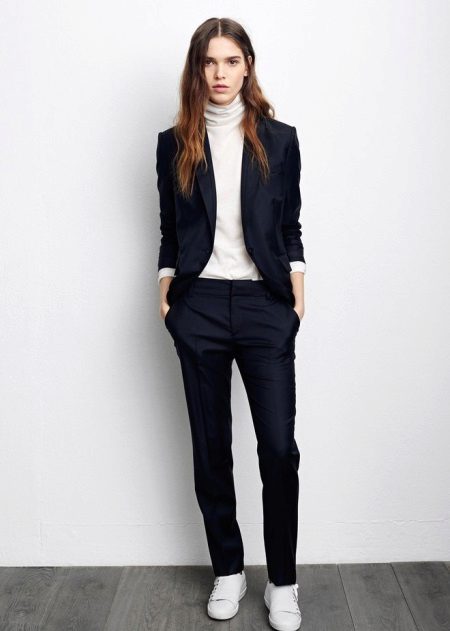Office and business style should be strict, but it is so boring. Therefore, the trouser suit is diluted with not quite ordinary shoes - sports-style sneakers. Original and convenient!
