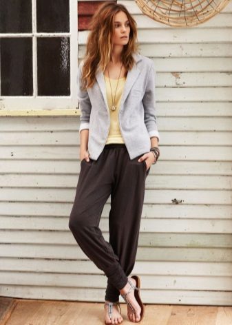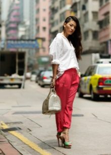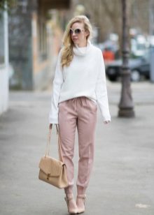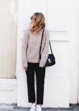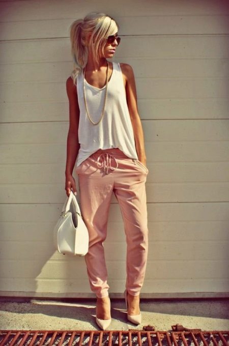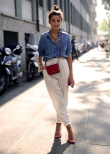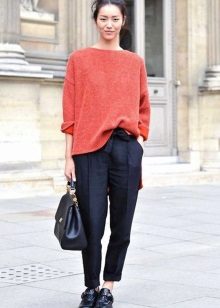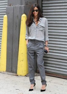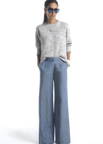 This model of trousers will suit both sophisticated shirts and loose t-shirts, woolen sweaters, various jackets and cardigans. For women, blouses of different styles will be an excellent option.
