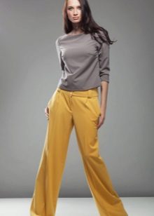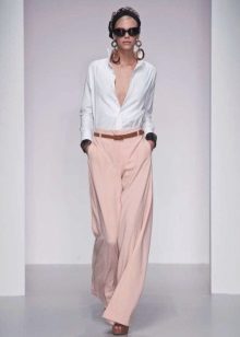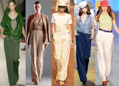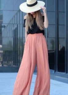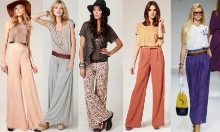 This is a model of very loose trousers that looks like a floor skirt. They are distinguished by a high waist, which makes the figure especially feminine and sophisticated. Usually they are sewn of light flowing fabric - silk, chiffon or thin cotton. This model will allow you to successfully mask all the flaws, give the image of elegance and lightness.